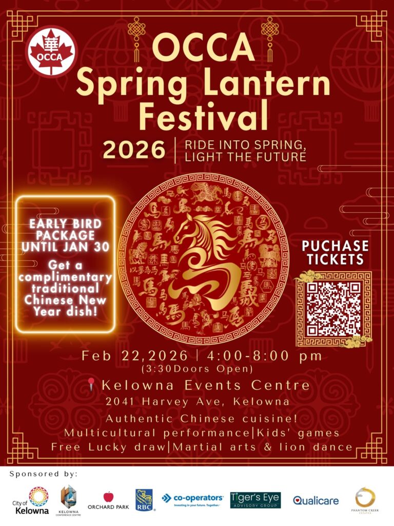 Celebrate the Lunar New Year and the Year of the Horse at Kelowna’s largest indoor Spring Lantern Festival, hosted by OCCA Communities Association. This one-night event brings together vibrant multicultural performances, authentic food, and hands-on family fun in a welcoming, community-focused setting.