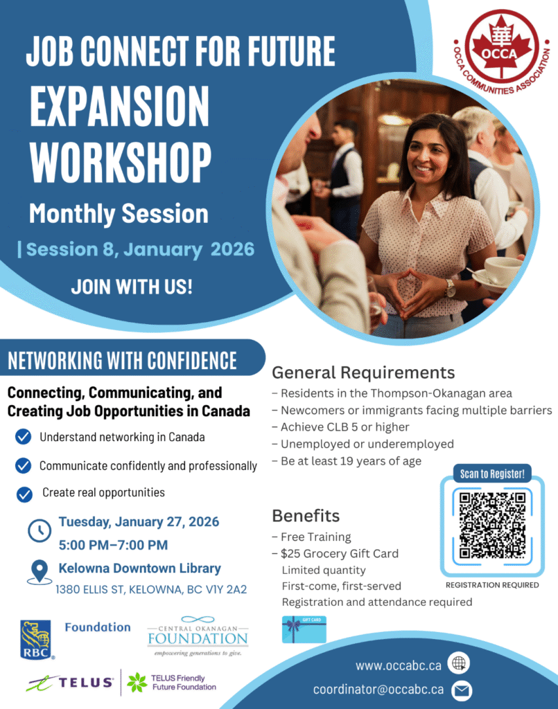 Job Connect for Future (JCF), delivered by OCCA Communities Association, invites newcomers and young adults to join OCCA Expansion Workshop – Session 8. This monthly job-readiness series supports career development and employment success in Canada.