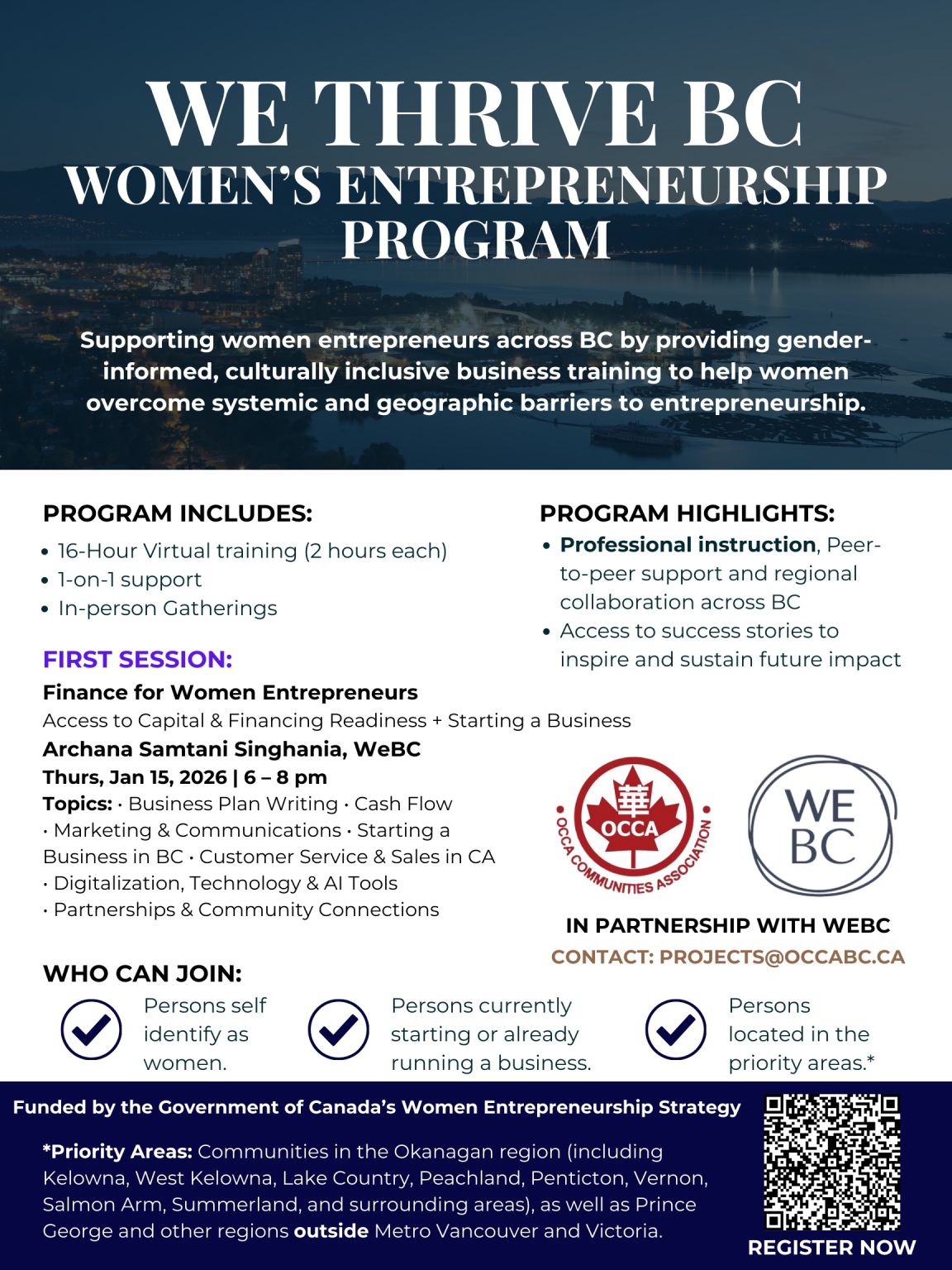 We’re excited to invite you to We Thrive BC, a women’s entrepreneurship support program delivered in partnership with WeBC and OCCA Communities Association.