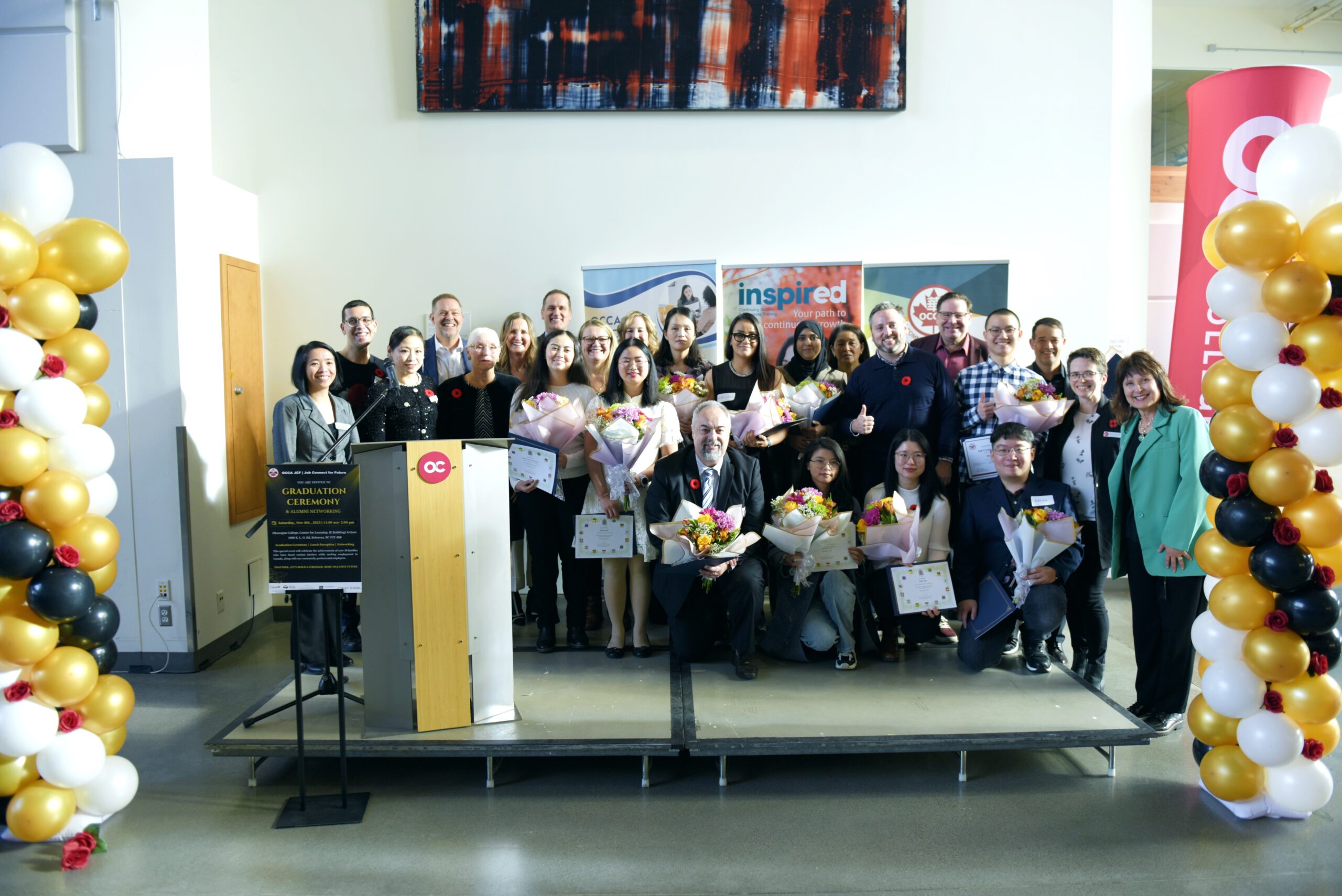 Kelowna, BC — The OCCA Communities Association celebrated the JCF Cohort 5 Graduation Ceremony and JCF Alumni Network Reception at Okanagan College on Saturday, November 8, bringing together approximately 100 attendees, including graduates, alumni, families, community partners, and supporters. With this cohort’s completion, the program has now supported 60 graduates across five cohorts.